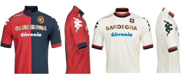 La nuova divisa del Cagliari calcio 2012-2013. Le divise firmate da Kappa sono in poliestere ed elastan. Anche quest'anno le magliette non hanno una geometria a quarti, infatti i due colori classici rosso e blu si dividono perfettamente lo spazio. Centralmente spiccano i due sponsor: regione Sardegna e Tirrenia.