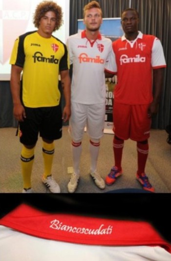 La prima maglia del Padova è ancora come tradizione bianca con colletto retro' rosso e bordi alle maniche rosse. Lo sponsor è Famila. Le divise Padova 2012 - 2013 sono create dallo sponsor tecnico Joma. I calzoncini ed i calzettoni sono bianchi, quest’ultimi impreziositi dalla croce sul retro. La maglia da trasferta è una divisa stile Arsenal, completo rosso con solo maniche bianche. La terza maglia è quasi interamente di colore giallo.