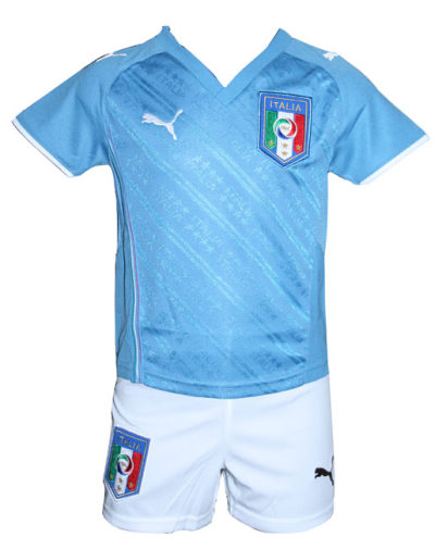 Ecco la Maglia realizzata dalla Puma con la quale l'Italia ha giocato la Confederations Cup in Sudafrica ad inizio estate. La maglia dal gusto retrò vuole celebrare le vittorie Mondiali della Nazionale Italiana ed in particolari le prime 2 storiche negli anni '30. Il colore è azzurro reale, con logo della Puma bianco sulla destra e scudetto sulla sinistra, da notare lo scollo a V e la ripetizione quasi ossessiva della scritta Italia su tutta la maglia.