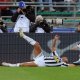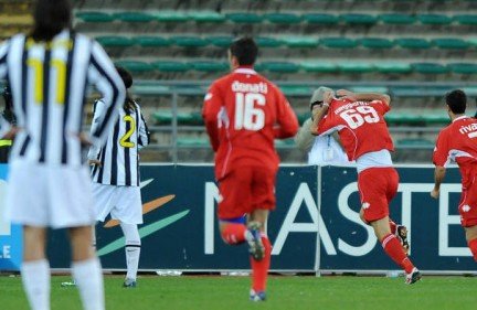 Le foto della partita Bari Juventus 3-1, sedicesima giornata di campionato di serie A 2009 2010. Il San Nicola stracolmo ospita questo big match. Il Bari ha sconfitto la Juventus per 3-1 stasera al ’San Nicolà di Bari nell’anticipo serale della 16.ma giornata del campionato di Serie A. I pugliesi, raggiunti al 23’ dal gol bianconero di David Trezeguet dopo il vantaggio ottenuto al 7’ con Riccardo Meggiorini, si sono imposti grazie ai gol di Paulo Vitor Barreto al 44’ su rigore e Sergio Almiron all’81’. Al 68’, sul punteggio di 2-1 per il Bari, Diego ha spedito sopra la traversa il calcio di rigore del possibile pareggio juventino.