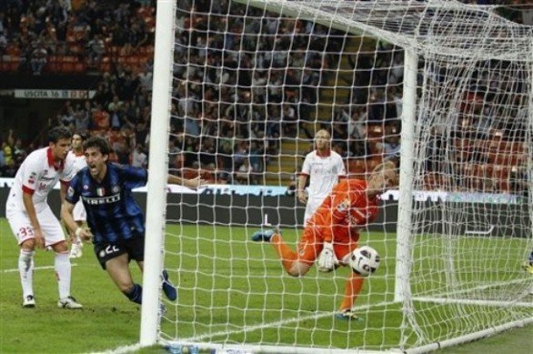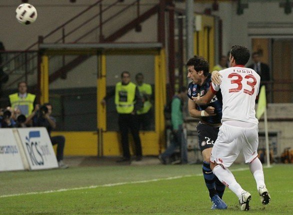 MOVIOLA – Due rigori per l’Inter, il primo ineccepibile (Ghezzal prende il pallone nettamente con la mano) e il secondo più difficile da valutare: il contatto tra Lucio e Rivas è evidente, ma sembra che il giocatore del Bari cerchi di fermarsi prima dell’impatto col brasiliano.