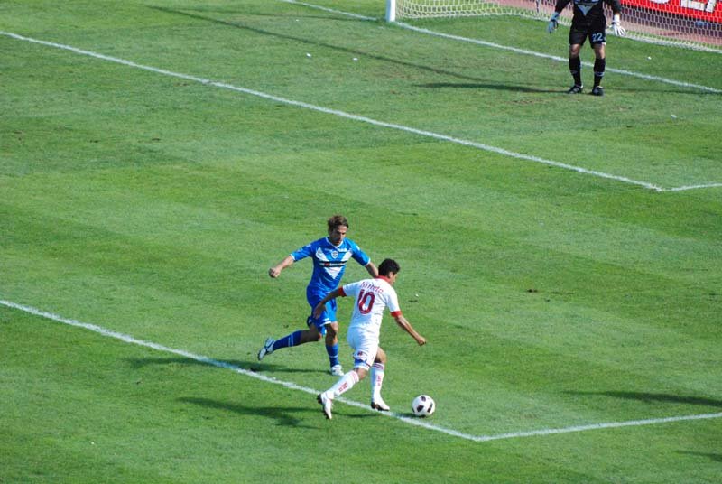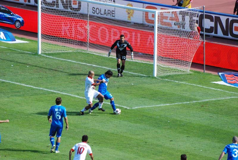 Le foto di Bari - Brescia 2-1, partita giocata il 26 09 2010 valida per la quinta giornata di campionato di serie A.Il Bari rialza la testa, Brescia ko al San Nicola. I biancorossi affondano 2-1 le rondinelle al termine di una gara tirata fino alla fine. Padroni di casa in vantaggio con Rivas, poi il pareggio di Kone. Nella ripresa decide il rigore di Barreto. Ventura: “Secondo tempo straordinario”