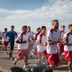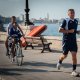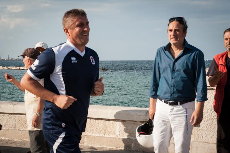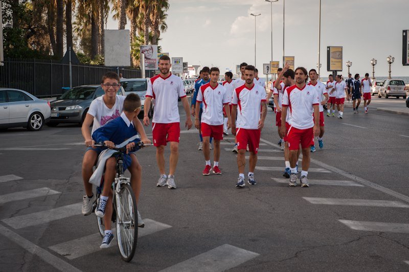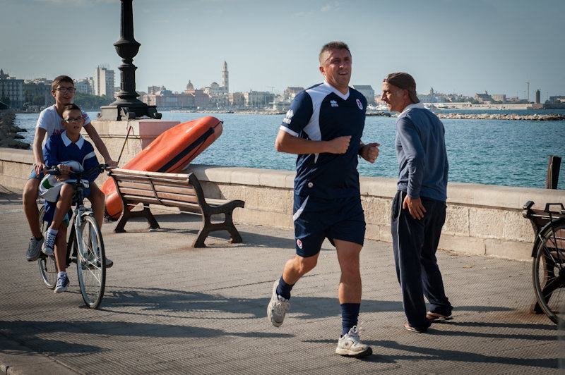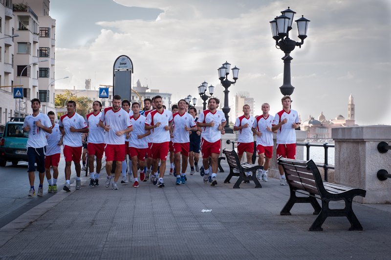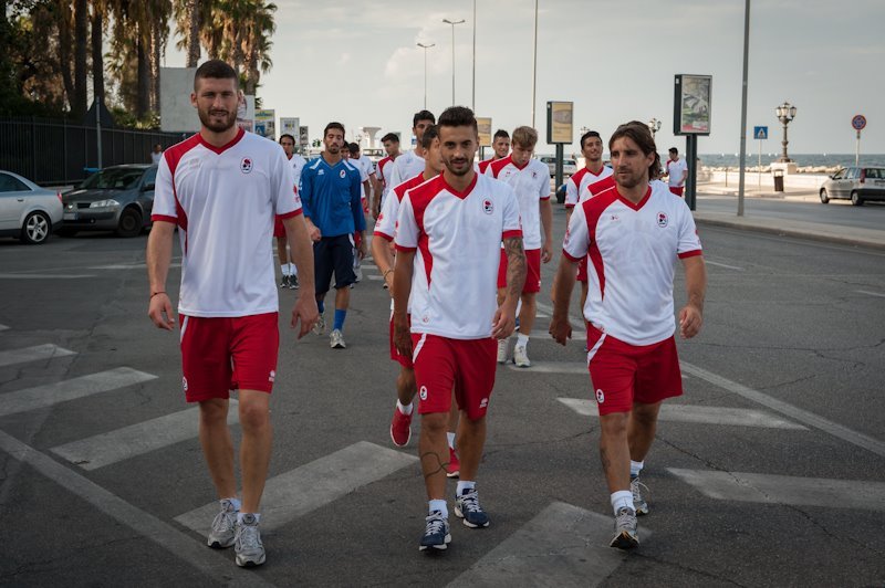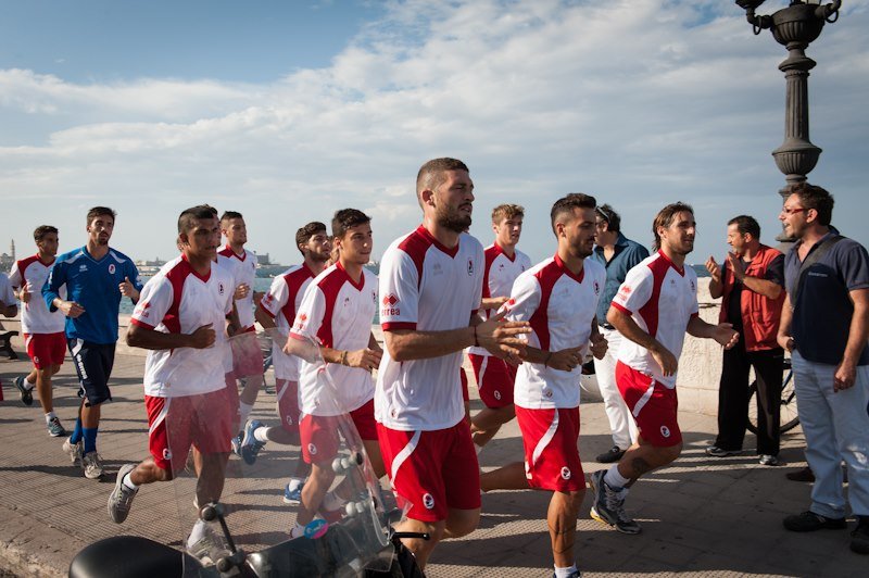 Le immagini degli allenamenti dei giocatori dell'as Bari calcio sul lungomare e nel centro cittadino.