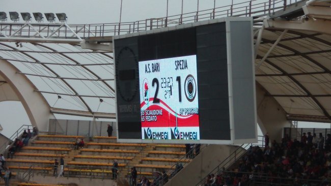 Le foto della partita Bari-Spezia terminata con il punteggio di 2 a 1 in favore dei galletti. In goal per il Bari Sciaudone e Fedato, mentre Porcari ha temporaneamente pareggiato su punizione. Il match è stato giocato il 27 aprile 2013.