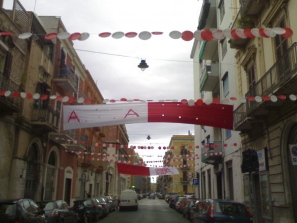 Dopo 12 anni, Bari riprova l'emozione della risalita in serie A...e si ricolora di biancorosso!La maggior parte delle strade del centro, del quartiere San Paolo, di Picone-Carrassi, di Japigia sono uno scintillio di bandiere, piatti e bicchieri rossi e bianchi, nastrini, galletti appesi...