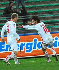 Nella stagione 2008-2009 in Serie B disputa 28 partite segnando 10 reti ottenendo la promozione in Serie A, mentre nella stagione successiva non segue i biancorossi restando sempre in serie cadetta passando alla Salernitana: qui le reti saranno 6 in 36 incontri.