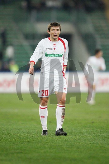 Vitalij Kutuzov attaccante arrivato dal Parma, nel Bari ha contribuito alla promozione in serie A. Giocatore possente, ha trovato grande sintonia nel gioco avanzato con l'altra punta Barreto. Vitali Kutuzaŭ (anche Kutuzov, biel. Віталі Кутузаў; Pinsk, 20 marzo 1980) è un calciatore bielorusso, attaccante del Bari e della Nazionale bielorussa. Sin da giovanissimo è titolare nella terza divisione bielorussa con MPKC 96 prima e RUOR Minsk poi. Nel 1997 approda al BATE, squadra della massima divisione nazionale con cui colleziona 99 presenze e 55 gol tra il 1997 e il 2001. In occasione della partita BATE-Milan valida per la Coppa UEFA 2001-2002 viene notato dal club rossonero, che lo acquista. Con la maglia rossonera, però, disputa soltanto 2 partite a causa della grande concorrenza in attacco. Nel 2002 viene mandato in prestito allo Sporting Lisbona (prima divisione portoghese), con cui mette a segno 3 gol in 24 apparizioni. Tornato in Italia, nel 2003 viene ceduto ancora in prestito, questa volta in Serie B, all'Avellino, allenato da Zdeněk Zeman. Nonostante la retrocessione della squadra irpina in Serie C1, gioca bene nel campionato cadetto 2003/04 e realizza 15 reti in 42 gare. Grazie alle brillanti prestazioni nell'Avellino si guadagna l'attenzione delle squadre di Serie A. Nel 2004/05 passa in comproprietà alla Sampdoria dove, pur giocando poco, si fa apprezzare per le sue qualità di jolly offensivo che sa agire sia da prima o da seconda punta e anche come ala. Alla fine della prima stagione a Genova totalizza 33 presenze e 4 gol, cui si aggiungono le 34 presenze e i 3 gol della stagione seguente. Il 20 giugno 2006 si trasferisce al Parma, in cambio dell'acquisto a titolo definitivo di Emiliano Bonazzoli da parte dei blucerchiati. Con la squadra emiliana scende in campo solo 9 volte ed anche per questo perde il peso forma. Per rilanciarsi, nell'estate del 2007 firma per il Pisa, in Serie B, dove segna 10 reti (realizzando la sua seconda migliore prestazione da quando è in Italia) prima di subire un grave infortunio nella gara contro il Chievo Verona del 26 aprile, che gli fa finire anzitempo la stagione regolare. Il 25 giugno 2008 non viene riscattato da parte del Pisa, a seguito di alcuni problemi relativi al passaggio di proprietà della società toscana, pertanto torna al Parma. In terra emiliana però Kutuzov non troverà abbastanza spazio, così il 20 gennaio 2009 si trasferisce al Bari con la formula della compartecipazione; segna il suo primo gol in maglia barese l'8 marzo 2009 nella partita in trasferta contro il Sassuolo. Ne segna altri 4 e il 4 giugno 2009 viene riscattato dal Bari nella quale militerà ancora per un anno. Il 23 agosto 2009 fa il suo ritorno in Serie A con il Bari al Meazza contro l'Inter, realizzando il gol del pareggio. KUTUZOV VITALIJ TRIBUTO AL GENERALE